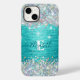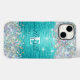 Modern Turquoise Holographic Faux Glitter Monogram Case-Mate iPhone Case