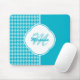 Modern Turquoise Houndstooth Monogram and Name Mouse Pad
