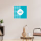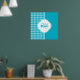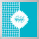 Modern Turquoise Houndstooth Monogram and Name Poster