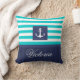 Add a coastal vibe to your space with this nautical throw pillow featuring a turquoise and navy blue striped pattern with an anchor design. Perfect for beach-themed rooms, this stylish pillow is fully customisable—you can easily personalise the name on the pillow to suit your decor or create a thoughtful gift. Ideal for living rooms or bedrooms, this personalised nautical pillow brings both comfort and a touch of the sea to any home. Whether you're decorating a beach house or looking for a unique accent piece, this pillow is the perfect choice.