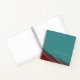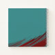Modern notebook features a minimal artistic design in a complimentary turquoise and red colour palette. Personalised name and sketchbook with volume number presented right justified, framed by a minimalistic artistic swoosh design.