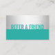 Modern Turquoise & Silver Beauty Salon Referral Card.