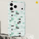 A modern and trendy phone case design for Apple iPhone and Samsung Galaxy models. A subtle watercolor painting of a geometric squares pattern in fresh turquoise, white and dark gray. The design has the look of random pixels floating in the air for a soft and airy aesthetic. This pattern is truly unique and dynamic! Your name is written in a simple & delicate sans-serif typography color-coordinated with the design. You can easily personalize this phone case on the platform, or leave it blank for a more minimalist look. There are several different colors of this design available in this collection.