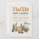 Modern Twin Happy Camper Woodland 1st Invitation