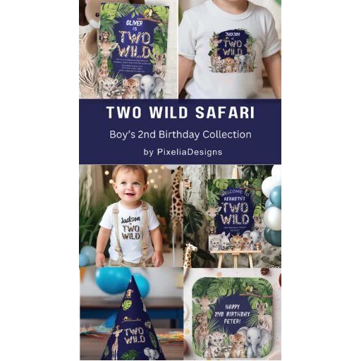 Navy Blue Two Wild, Safari Themed 2nd Birthday Designed by Pixelia Designs