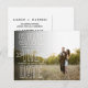 These custom postcards are a budget friendly way to share the big news with your friends and family and ask them to save the date for your wedding day. The front of the postcard features modern text and a bold arrow graphic along with your names and favourite engagement photo behind a darkening overlay that can be removed for photos that are already dark enough on the side. Personalise the back with your first names, wedding date, location and wedding website.