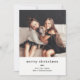 This simple and stylish holiday card says "merry christmas" in typewriter text, with a trendy botanical branch and your favourite personal photo. The background is decorated with a black gingham pattern.
