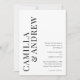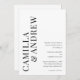 A Modern Typographic Black and White QR code Wedding Invitation with large couples names and details on the front. The back has a QR code with additional details for guests making this a budget friendly all in one option.