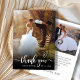 Modern Elegant Heart Typography Wedding 2 Photo Thank You Card. Stylish Minimalist wedding thank you template featuring a full vertical photo on the front with the text "Thank You" in a hand lettered calligraphy swash tail script font overlay with love heart motif in white on the picture. At the back side one photo and thank you message template. Easy to personalise your name and thank you message. If you prefer to handwrite your note, just delete the sample text to make more space. If You need help or matching item, please contact to me!