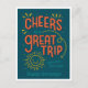 Cheers to a Great Trip Around the World Happy Birthday Modern Lettering Quote in Teal and Orange.