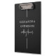 Stay organised in style with this Modern Black Minimalist Clipboard, designed for professionals who appreciate sleek, contemporary design. Featuring clean white typography on a matte black background, this personalised clipboard adds a sophisticated touch to your workspace, client meetings, or events.