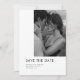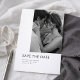 A modern black and white photo wedding save-the-date featuring clean typography and a minimalist layout. This elegant monochrome design blends contemporary style with timeless sophistication, perfect for couples who love simple, refined wedding stationery.