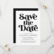 Modern save the date card featuring "Save the Date" displayed in bold black lettering with a white background. Personalise the stylish save the date card with your names, wedding date, location, wedding website, and other important wedding details.