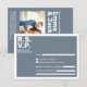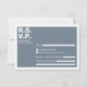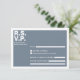 Make guest responses effortless with this sleek and bold wedding RSVP card, styled in rich slate blue and accented by crisp, minimalist white text. The contemporary, clean simple vertical layout coordinates seamlessly with modern wedding invitations featuring a striking vertical date. Bold typography takes centre stage, giving an elegant, type-heavy look that feels both trendy and functional. Ample space and streamlined formatting make replying straightforward for your guests, while the overall minimalist design ensures your suite remains stylish and sophisticated. Perfect for couples who appreciate a blue wedding response r.s.v.p with modern edge, this card brings together contemporary flair and effortless usability in one elegant piece.