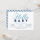 Celebrate a special day for your loved one with this modern baby shower invitation! This design features simple but stylish typography " Hello Baby" with blue & navy colour theme.
