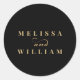 Modern Bride Groom Names Wedding Typography Sticker Seal. Beautiful gold coloured typography on black. Personalise with the bride and groom's names. Excellent for envelope seals and favours. Please visit our store, Austen & Grace, to view the full wedding suite, matching products and more, and please contact us if you require any assistance contact@austenandgrace.com