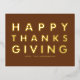 Modern Typography Brown Happy Thanksgiving Gold Foil Holiday Postcard