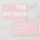 This modern enclosure card features large, bold fun lettering for "THE DETAILS" in bright pink with easy to read white typography, creating a vibrant and minimalistic look. Perfect for weddings or parties, it offers space to add essential venue, RSVP, and reception information in a simple style guests will find clear and accessible. Customise the message to suit any celebration, making this card a stylish and practical addition to your event stationery.