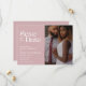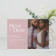 Modern minimal design with one vertical photo and trendy typography on dusty rose background. The text and photo can easily be personalised for a unique one of a kind design for your special day.