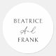 Classic style wedding stickers with a modern twist. The template features a simple and minimal layout with "and" in an elegant typography along with your names. Use these stickers to seal your envelopes or for your wedding favours. This minimalist black and white design works great for a formal wedding and may be changed to any colours you wish in the design editing tool.