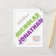A colourful modern typography "Save the date" postcard, inspired by the beauty and simplicity of grids and asymmetrical layouts from Swiss Style, perfect for any gay marriage or civil union celebration.