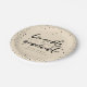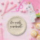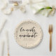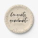 Modern typography bold brushed script in black, personalised graduation party plate, with black dot accents. Background colour shown in champagne can be customised.
