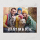 Modern Typography Happy New Year Photo Postcard. Design features single photo, white typography overlay ''happy new year'' in trendy capital lettering, your family name & year on the front. Personalise further with your message on the back.