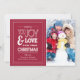 Stylish White & Red Love & Joy for the Holidays typography Christmas Photo card.
