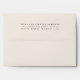 Soft ivory tone envelope with a lightly spaced serif return address on the back flap for a minimal, elegant look.