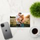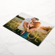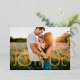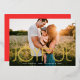 This modern holiday photo card features one horizontal "full-bleed" photo and a modern typography greeting which says "JOYFUL". The back of the card is a coordinating red background colour. You can also add another photo and/or additional text to the back!