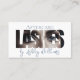 Keep your lash game strong with this matching aftercare card, designed to complement your bold lash business branding. Featuring the same striking “LASHES” typography with a dramatic close-up eye photo, this card combines style and function. The clean layout provides essential lash extension aftercare tips in a clear, professional way - perfect for lash artists, estheticians, and beauty pros who want to maintain client results and reflect a high-end, cohesive brand.