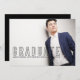 This modern graduation announcement features your full bleed photo with the word “graduate” in a modern typographical overlay. Personalised with your graduates information underneath.