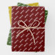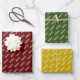 Minimal and modern Christmas wrapping paper set in red, green and a golden yellow.