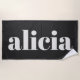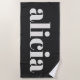 A chic personalized design with a large lowercase name in bold white serif type on a black background. Clean, modern, and easy to spot at the pool or beach. Customize with any name for a simple look that feels classic and elevated. Great for vacations, lake days, swim team meets, and gifts.
