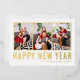 Happy New Year! Send your warm wishes this season with this customisable photo collage New Year card. It features simple typography. Personalise by adding your photos, names, year and other details. This gold foil New Year card is available in other colours and cardstock.