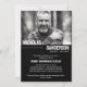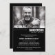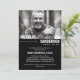 Minimalist typography memorial service invitation with a photo of your loved one and white fonts against a black background. Minimalist husband funeral invitation in a black and white design personalised with a photo printed in full colour.