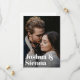 A modern photo save the date design by Stacey Meacham featuring bold couples names and portrait photo aperture. A great way to announce your upcoming wedding and set the theme for your event.