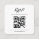 Simple and modern: a RSVP response card with a QR code that leads to your wedding website. Easy to customise with your own colours and QR code.