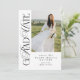 Graduation Invitation with single Photo, Modern Script Graduation Announcement, Trendy Cursive and Capital Letter Grad Party Invite. Celebrate your big achievement with this stylish graduation invitation card featuring the word “Graduation” in a trendy, elegant font that blends flowing cursive with bold apital letters. This modern typography style is extremely popular for graduation announcements and creates a sophisticated yet fashionable look that stands out. The front of the card includes a beautiful space for your favourite vertical or portrait photo, perfect for showcasing your favorite senior portrait, graduation picture, or memorable moment from your school years. Beneath the photo, there is space to personalize the design with the graduate’s name, graduation year, and school, creating a meaningful and unique graduation announcement.