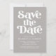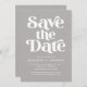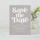 Modern save the date card featuring "Save the Date" displayed in bold white lettering with a speckled grey background. Personalise the stylish save the date card with your names, wedding date, location, wedding website, and other important wedding details.