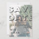 Modern faux vellum typography overlay and custom photo wedding save the date with black and white trendy bold outline script. Easy to personalise on both sides. If you don't need the text on the backside, just delete the template.