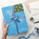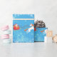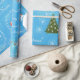 Modern Unicorn Santa Snow Merry Xmas Trees Blue Wrapping Paper