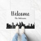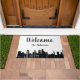 Modern Urban Cityscape Welcome Hand Lettering Doormat