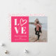 Send your love with this simple and modern valentines day card with large words LOVE with a pink heart on a pink background. Customise with your own photo and names for a cute personal look.