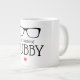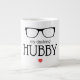 Show the love with this giant coffee mug featuring graphic glasses with the words "My dashing hubby" and a small heart.