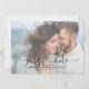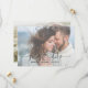 Fresh, modern faux vellum overlay style photo save the date wedding card. The front of the card features "Save the Date" in an ultra-modern, hand lettered script typography in black, with the word 'the' in a heart connecting the words 'save' and 'date.' This text is placed over a faux vellum layer, with your full bleed image behind. The wedding date, location and bride and groom names appear below, in a fresh, light modern sans serif font that creates a very clean look, and your names are written in a beautiful, bouncy hand lettered script typography. The back of the card features another full-bleed engagement photo. CREATOR'S NOTE: The "vellum overlay" on this product is a digital effect." Copyright Anastasia Surridge for Anastasia Designs, all rights reserved.