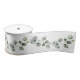 Modern versatile Eucalyptus branch border Ribbon. This 3" wide satin ribbon will lift any gift with solid colour wrapping in green tones from Sage and Eucalyptus and white. Modern, minimalistic and luxurious gift wrapping for any occasion.