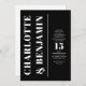 Make a striking impression with this modern vertical bold wedding invitation. Featuring clean and elegant white typography against a bold black background, this design emphasizes sophistication and simplicity. The vertical layout adds a contemporary twist, making it an ideal choice for couples seeking a stylish and minimalist aesthetic for their special day. Perfect for modern weddings with a timeless, chic theme.