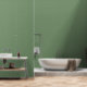 Modern vertical Kale Green striped pattern wallpaper suits any room, including the living room, bathroom, kitchen, bedroom, or nursery. The wallpaper shown is textured vinyl that can be easily peeled and stuck. It comes in a 2' x 12' sheet. You have the option to choose from different styles and sizes.
