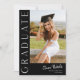 This modern elegant stylish photo graduation invitation features a vertical photo and headline with customisable script name and text on the front. The back has an invitation with party details. A great way to showcase your graduate. Click the edit button to personalise this design.